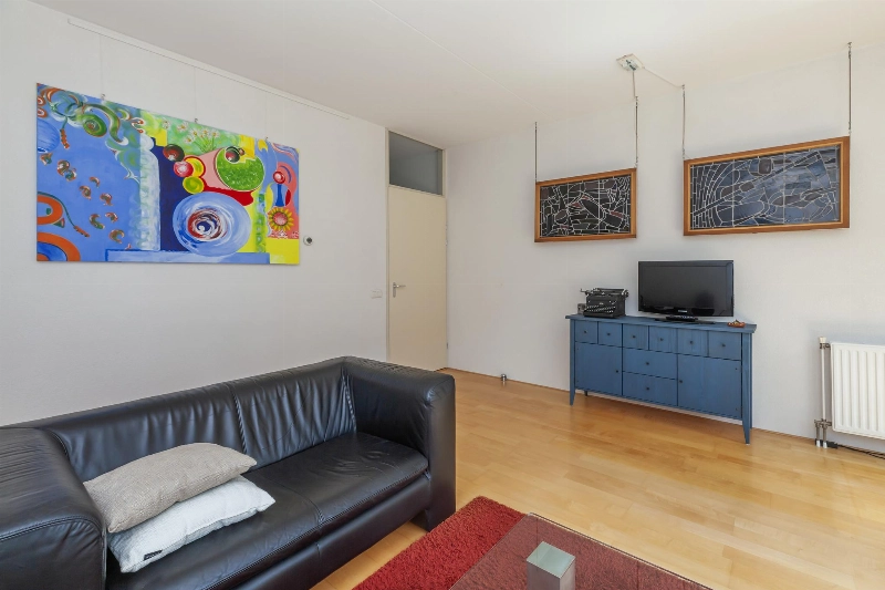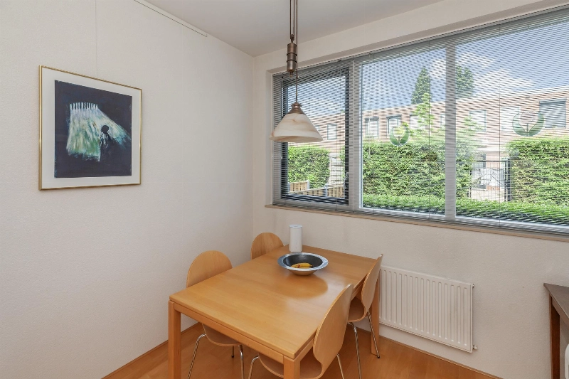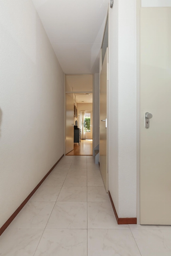 Tussen de woonkamer en keuken bevindt zich een diepe trapkast.