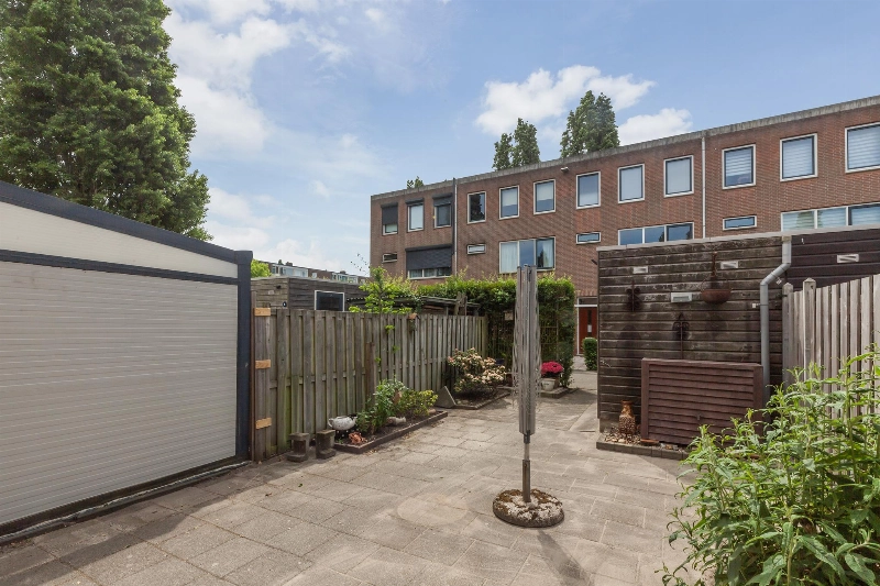 De tuin is heerlijk op het zuiden gelegen, hier kan je dan al vroeg in het jaar genieten van het zonnetje! De tuin sluit direct aan op de steeg in de tuin staat een houten berging.
