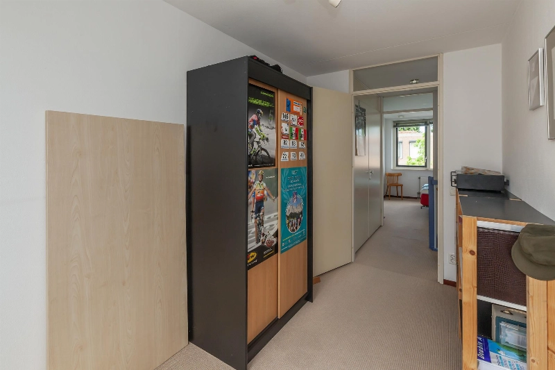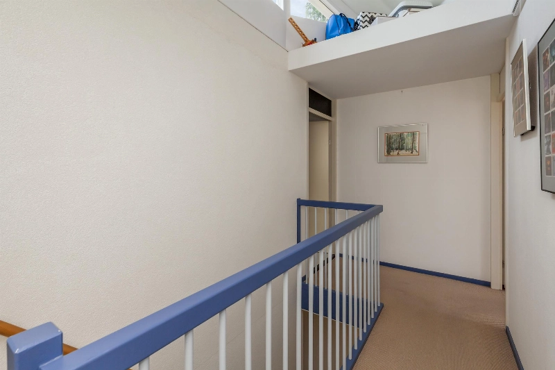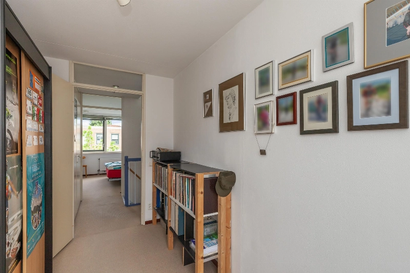 Ruime en lichte overloop met speelse ramen en vaste kast met opstelling van de CV- combiketel (Intergas 2012) en de warmte- terugwin-installatie. De overloop is voorzien van een vloerbedekking die doorloopt in alle slaapkamers.