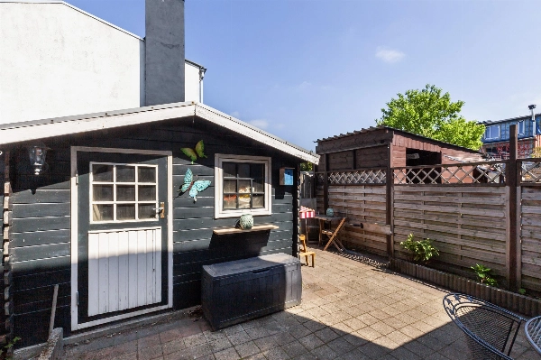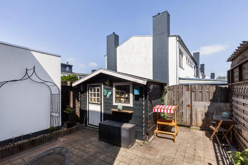 Buiten geniet je van de ruime voor- en achtertuin, perfect om te ontspannen of een barbecue te houden. De achtertuin heeft bovendien een houten berging met elektra, ideaal voor het opbergen van je tuingereedschap of voor extra opslag.