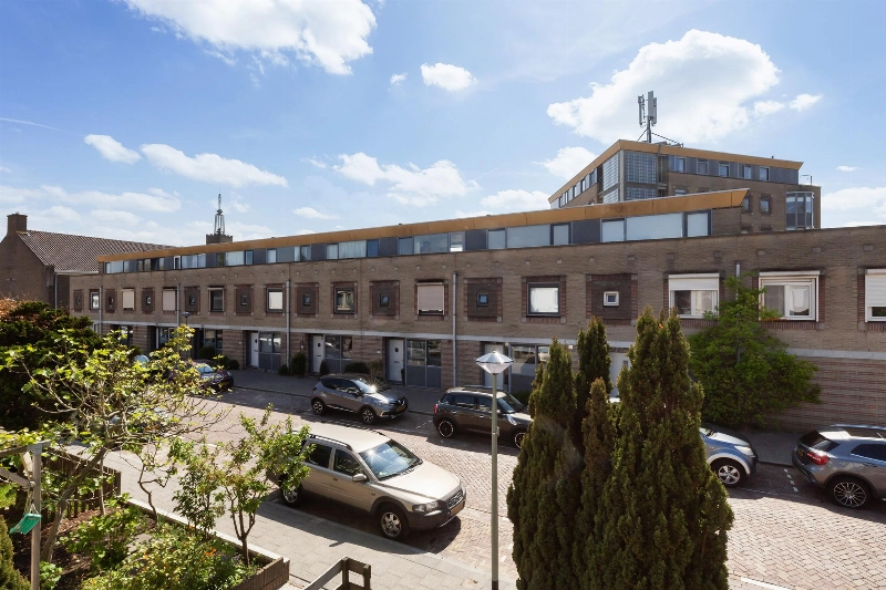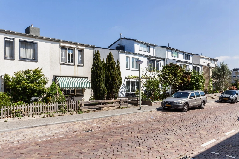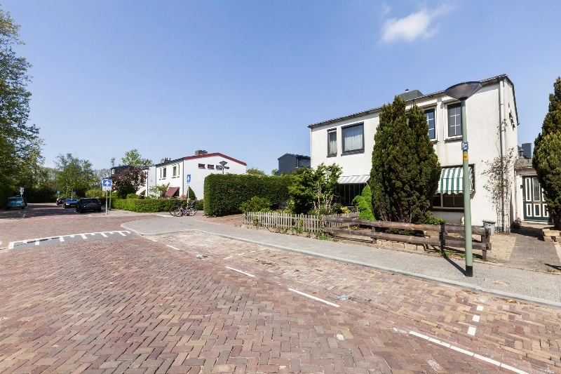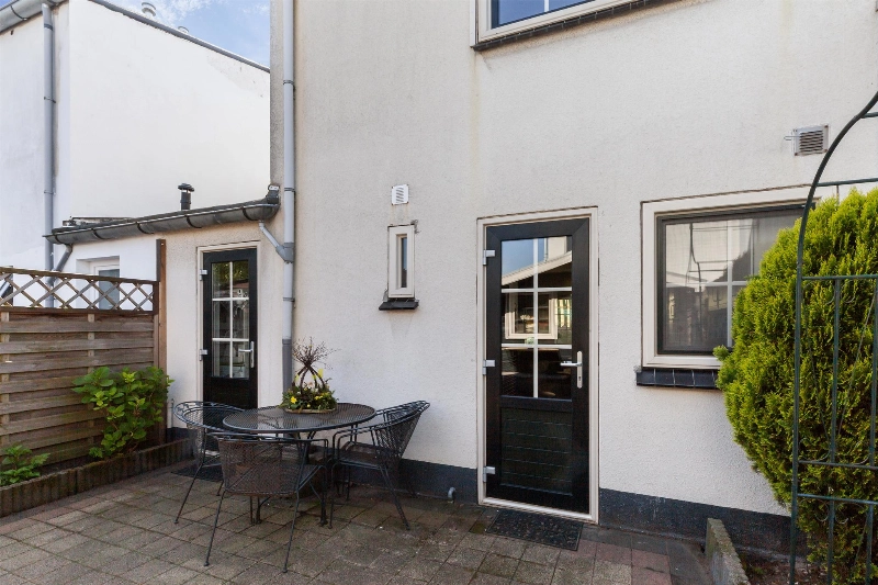 De voortuin is een heerlijke plek met een combinatie van bestrating en groen, waar je in alle rust kunt genieten door de beschutte ligging in een rustige straat.