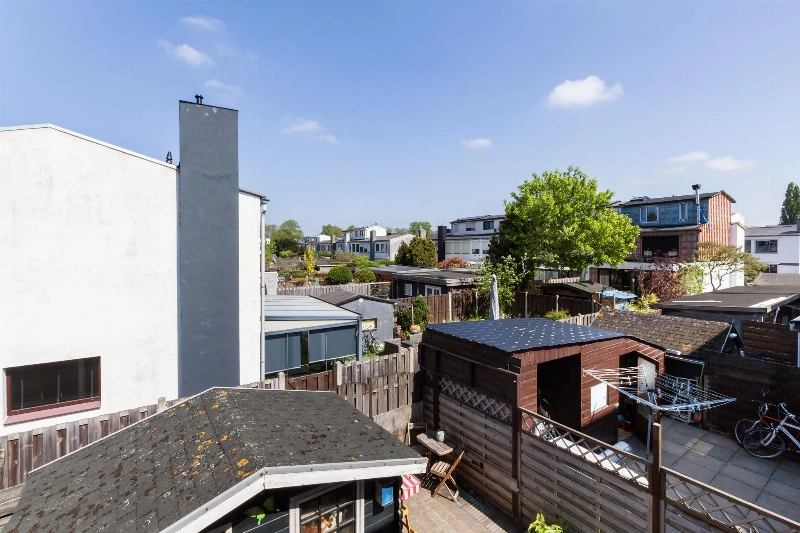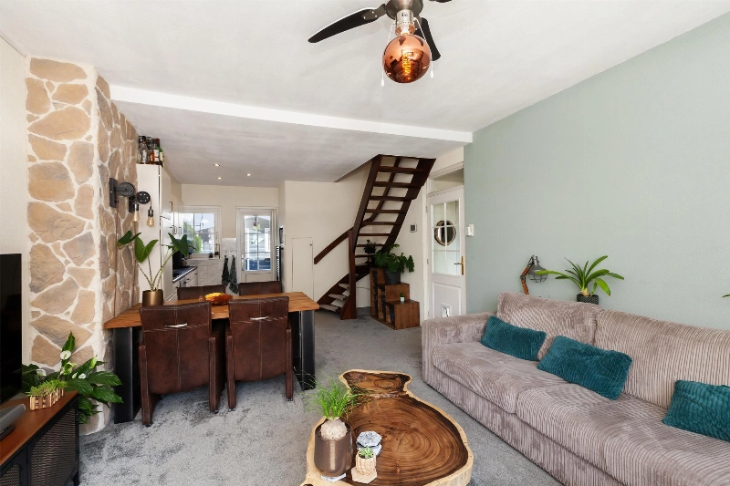 Op de begane grond vind je een gezellige, lichte woonkamer die uitkijkt over de sfeervolle voortuin en een lichte moderne keuken met inbouwapparatuur. Op de eerste verdieping vind je twee royale slaapkamers en een gloednieuwe badkamer die een frisse uitstraling heeft. Deze moderne badkamer heeft een grijs/witte betegeling en is uitgerust met een douchehoek met een glazen schuifwand, een strak wastafelmeubel met een spiegel met verlichting, afzuiging en een verlaagd plafond met spots.
