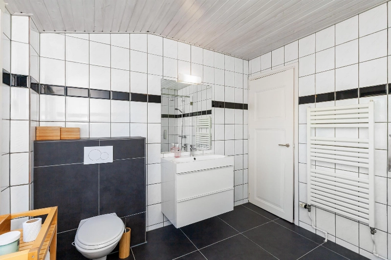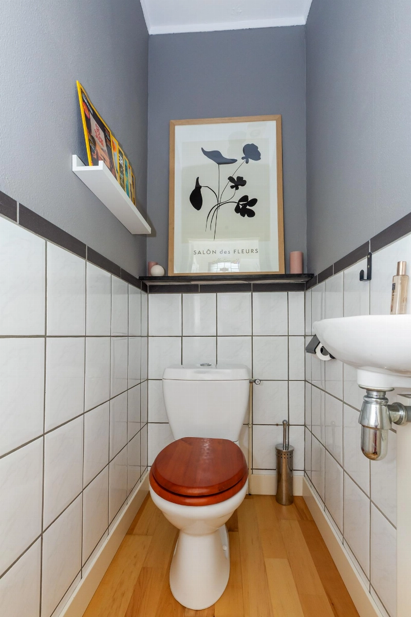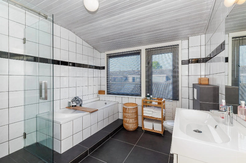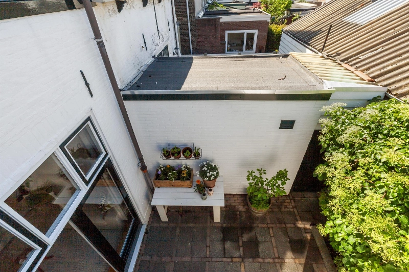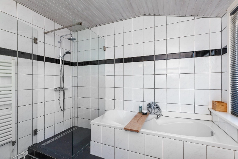 Een voormalige 3e slaapkamer is omgezet en daarom beschikt dit huis over een heerlijk ruime badkamer! Deze is in 2017 vernieuwd en gedeeltelijk betegeld en voorzien van een inloopdouche, ligbad, wastafel in meubel, 2e toilet en er is een deur naar buiten met mogelijkheid tot dakterras.