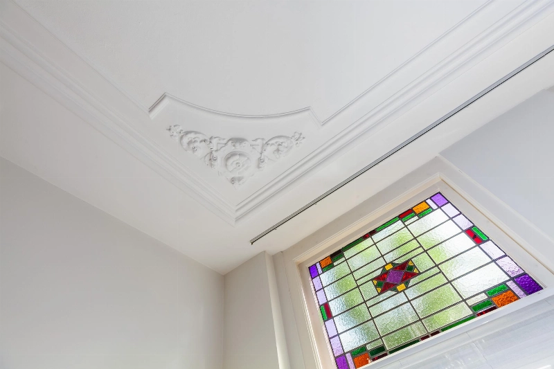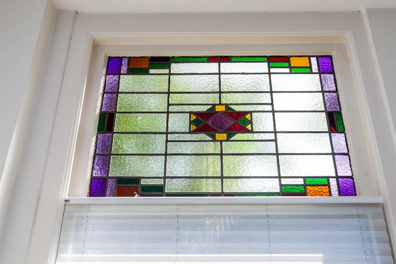 -Geheel voorzien van houten kozijnen met dubbele beglazing (deels HR +++) . Het glas-in-lood is voorzien van voorzetramen;