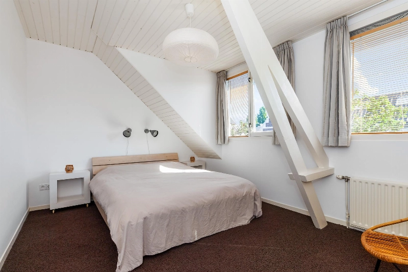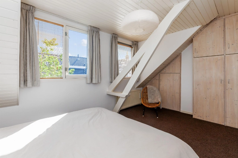 Slaapkamer I is gelegen aan de voorzijde en is voorzien van een dakkapel, inbouwkasten en de dakspanten geven extra sfeer.