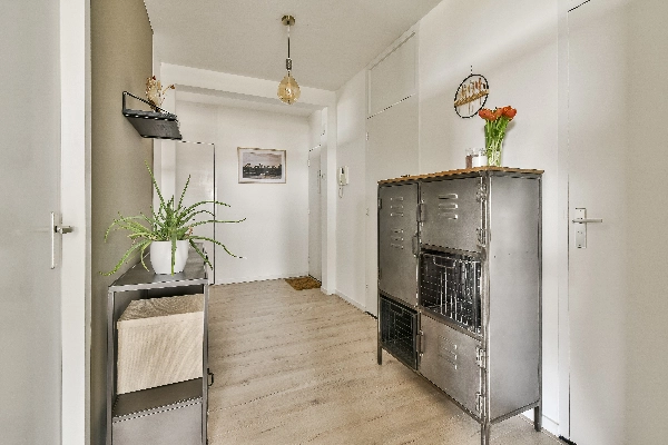 Bij binnenkomst valt direct het moderne afwerkingsniveau op. De ruime hal is voorzien van een mooie houtlook laminaatvloer welke is doorgelegd in het gehele appartement. Er is een praktische vaste kast en voldoende ruimte voor een garderobe.