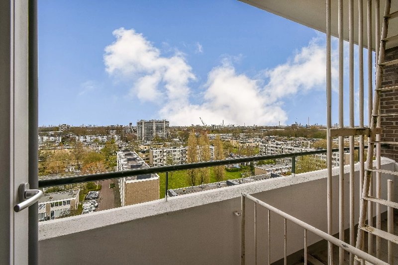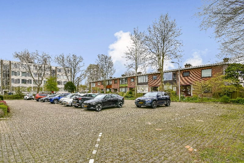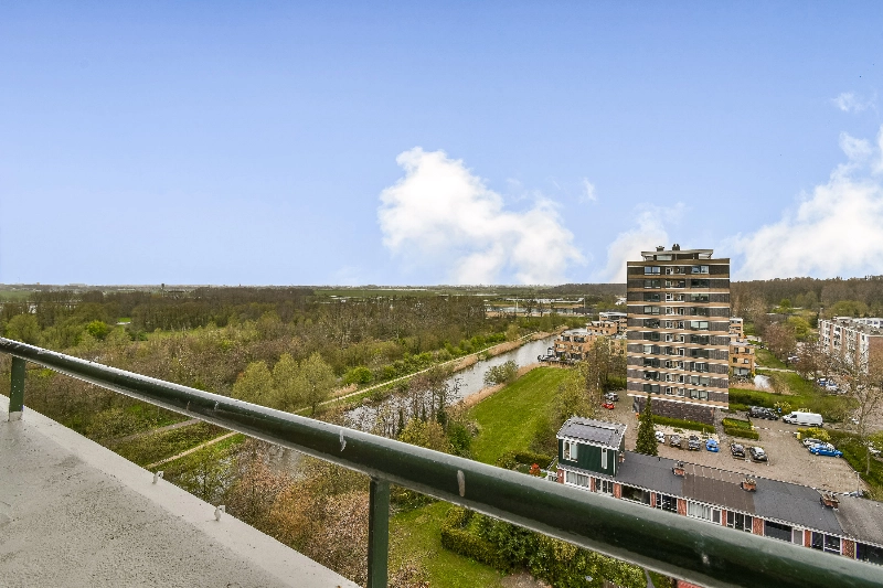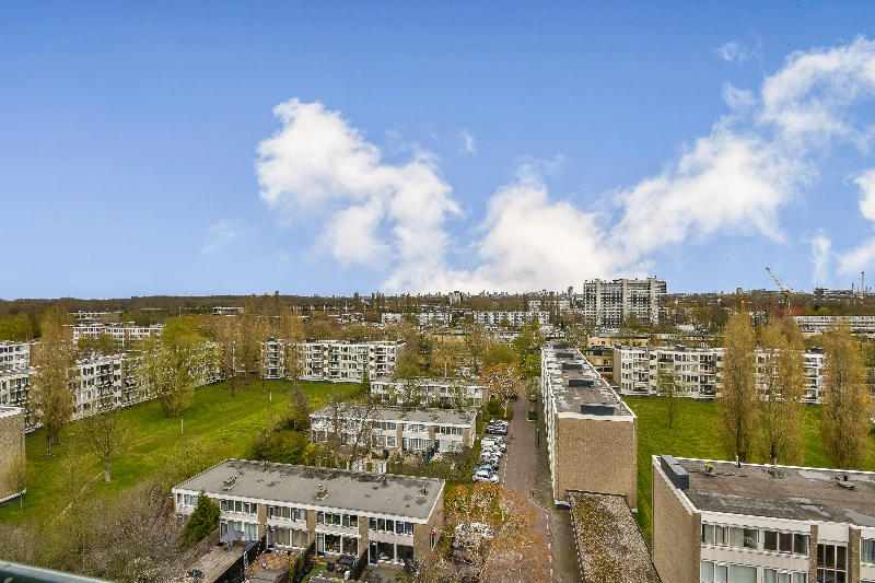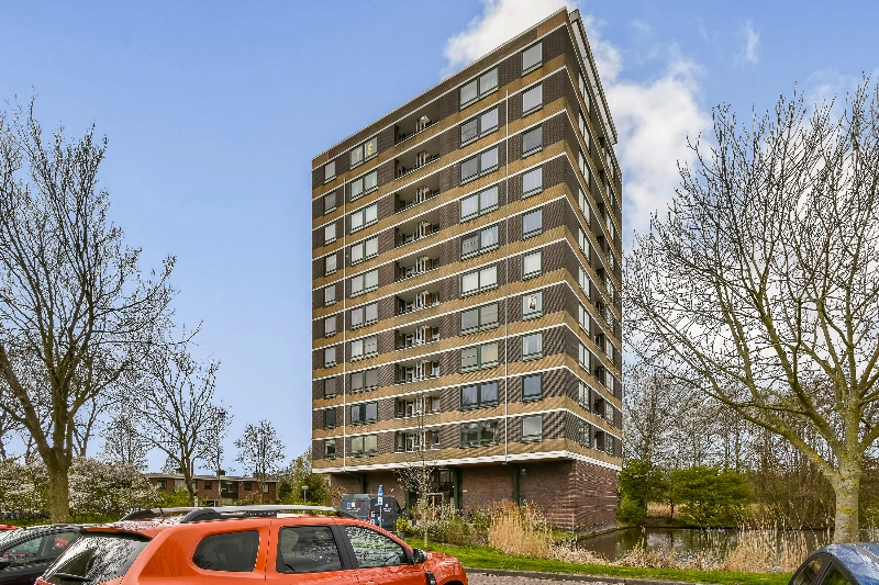 Het appartement is gelegen op de 9e verdieping van een verzorgd appartementencomplex met een afgesloten parkeerterrein met een eigen parkeerplaats. Daarnaast is er in de directe omgeving voldoende openbare parkeergelegenheid aanwezig.