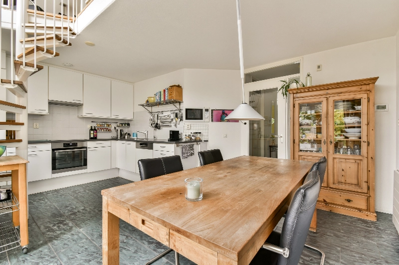 Op de begane grond vindt u een heerlijke woonkeuken met toegang tot de zeer diepe, zonnige achtertuin en via een vide met trap is er een directe verbinding met de royale woonkamer op de 1e verdieping. Aan de woonkamer grenst een fijn terras aan de voorzijde. U kunt hier menig uur rustig doorbrengen.