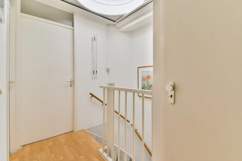 Overloop met een 3-dubbel geïsoleerde lichtkoepel met rolluik. Vaste kast met opstelplaats voor de CV en de mechanische ventilatie.