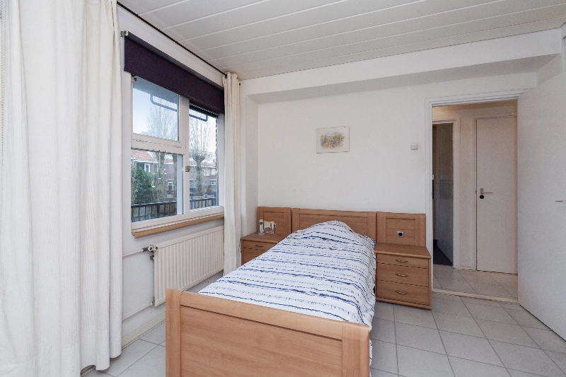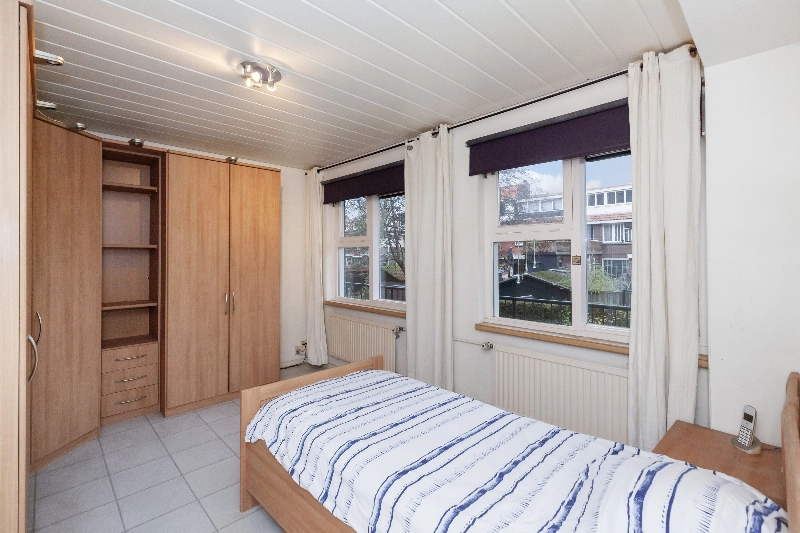 Slaapkamer I ligt aan de galerijzijde en is voorzien van een vinylvloer en een vaste kast. Deze ruime kamer bestond oorspronkelijk uit twee kamers.