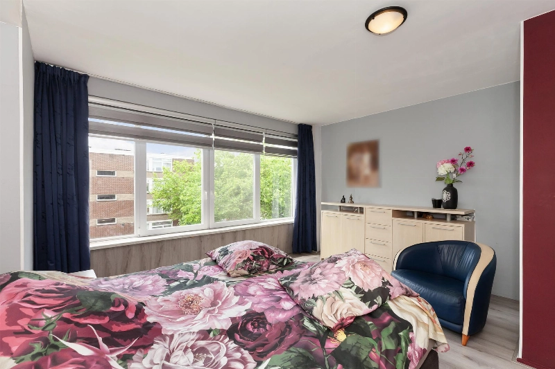 Slaapkamer I is gelegen aan de voorzijde. Het voormalige balkon is bij deze slaapkamer getrokken waardoor een ruime kamer is ontstaan! De vloer is afgewerkt met een keurige laminaatvloer.