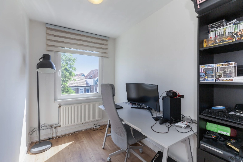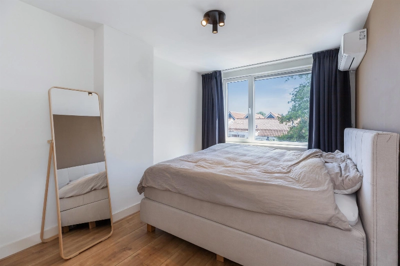 Slaapkamer III is eveneens aan de achterzijde gelegen en is voorzien van een kastenwand en in 2022 is een airco geplaatst.