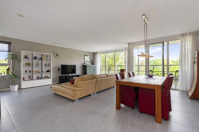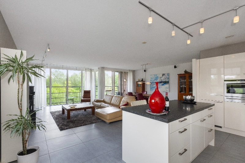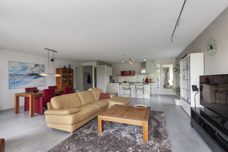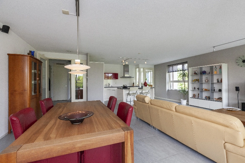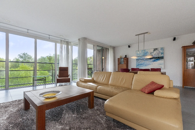 Het appartement is luxe uitgevoerd met o.a. een prachtige plavuizen vloer voorzien van vloerverwarming- en koeling, een complete hoekkeuken met inbouwapparatuur en een aparte eetbar, een moderne badkamer met jacuzzi en 3 ruime slaapkamers. De woonkamer is met zijn ca. 60 m² echt ruim te noemen en door alle ramen is er een mooie lichtinval! Het appartement is volledig drempelloos en heeft brede doorgangen voor optimaal gemak.