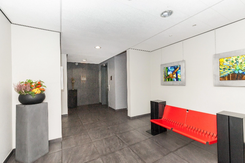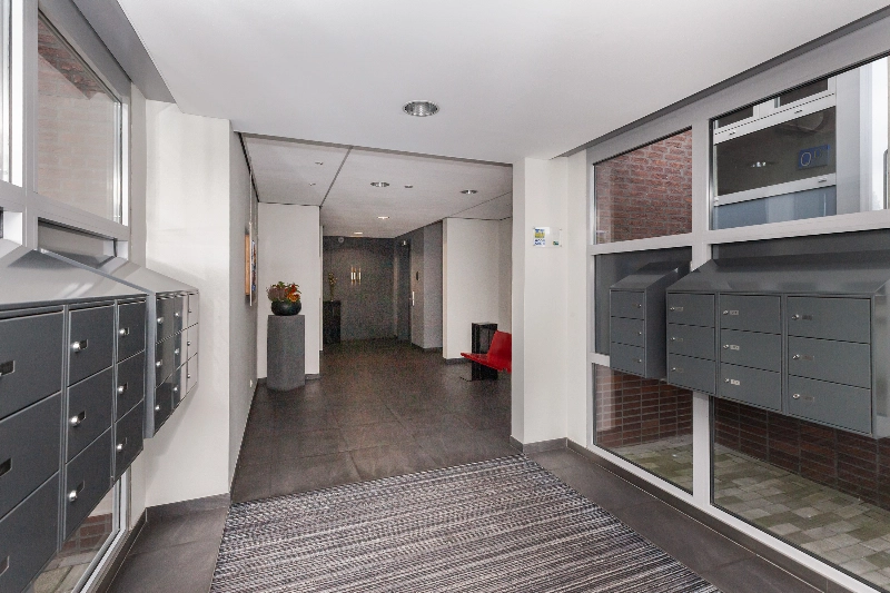 Afgesloten entree met bellentableau, videofoon en brievenbussen. Centrale entreehal met de lift en het trappenhuis. Via deze hal is tevens de parkeergarage met een eigen parkeerplaats en een gezamenlijke fietsenberging bereikbaar. Middels een trap en liften zijn de verdiepingen te bereiken