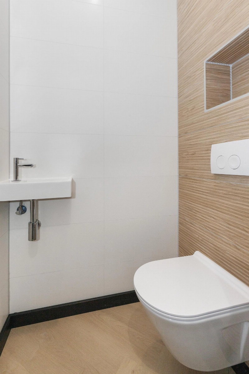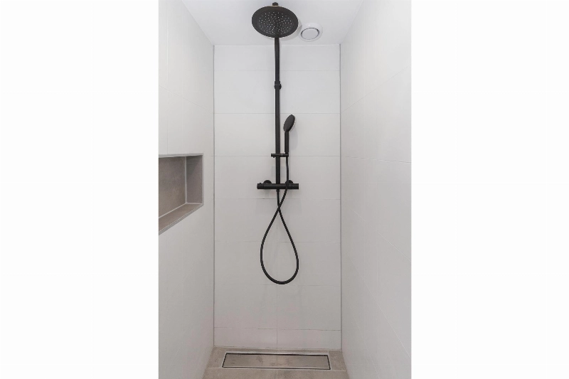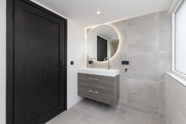 Op de eerste verdieping bevinden zich twee comfortabele slaapkamers en een luxe badkamer. Deze is voorzien van een modern wastafelmeubel met dubbele kraan, ruime inloopdouche, toilet en een aansluiting voor de wasmachine.