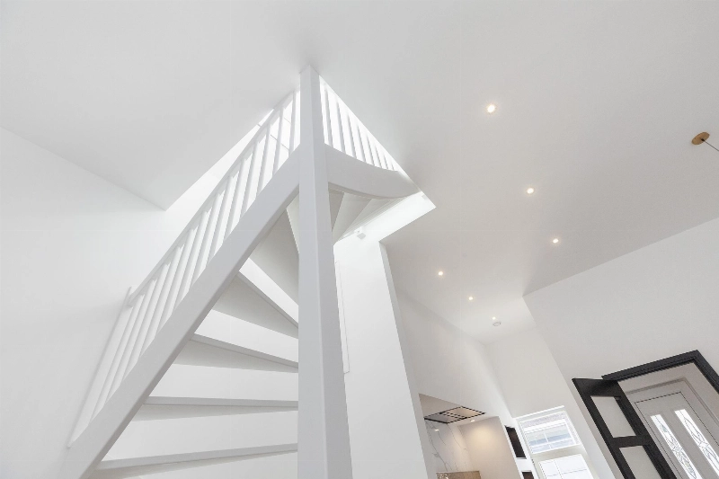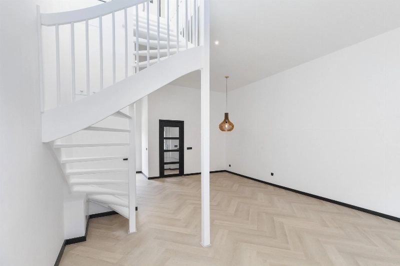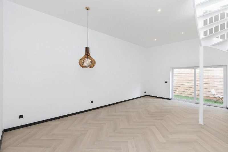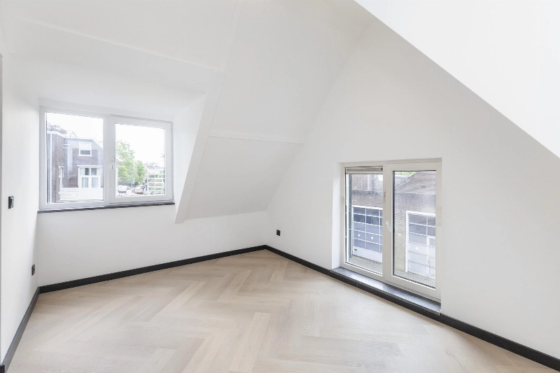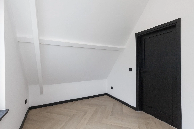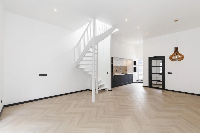 Binnen valt direct de indrukwekkende plafondhoogte van 3,57 meter op, die zorgt voor een gevoel van ruimte en luxe.