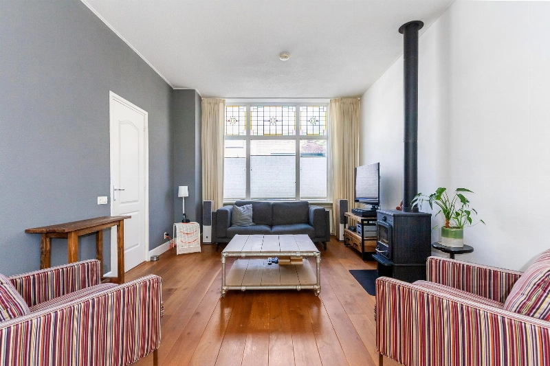 In de knusse Emmastraat, middenin het centrum van Vlaardingen, mogen wij deze charmante 3 kamer eengezinswoning met karakteristiek klokgeveltje aanbieden. De woning heeft een ruime en lichte woonkamer met een hoog plafond en glas in loodramen, welke voor extra sfeer zorgen. Verder is er een open keuken met diverse inbouwapparatuur, twee royale slaapkamers en een ruime badkamer op de eerste verdieping.