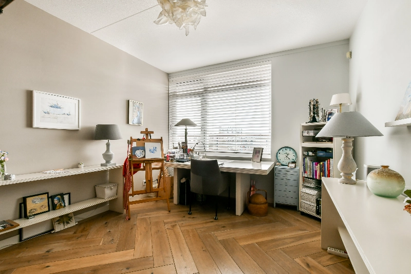 Deze kamer is gelegen aan de voorzijde en is thans in gebruik als werkkamer.