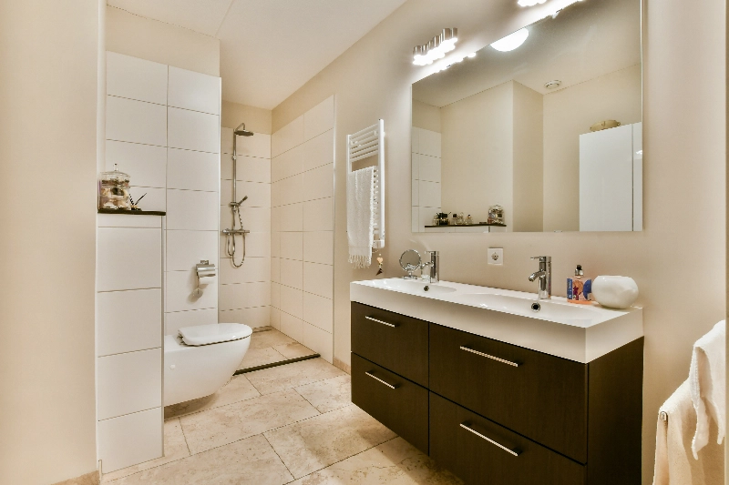 Slaapkamer II telt 13m², is eveneens gelegen aan de voorzijde en heeft een eigen badkamer. Deze is mooi betegeld en voorzien van een badkamerkast, een breed wastafelmeubel, toilet en een douche.