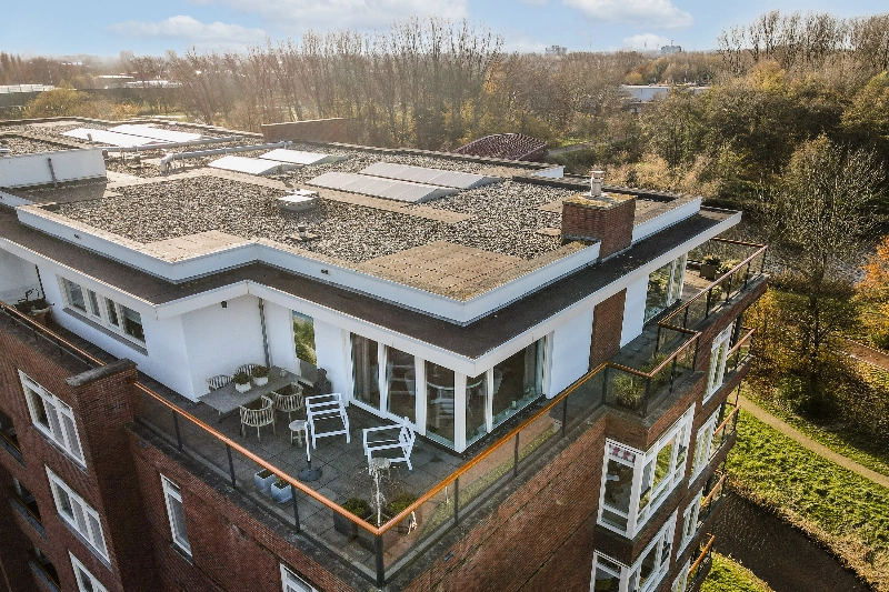 Aan het eind van de dag pakt u een moment van rust op het ruime dakterras van 98 m². Vrienden of familie schuiven aan voor een borrel of een eenvoudige, maar gezellige maaltijd in de lichte woonkeuken. Terwijl de zon langzaam ondergaat, kijkt u nog even uit over de horizon en u beseft... dit voelt niet zomaar als wonen… dit voelt bijzonder relaxt!