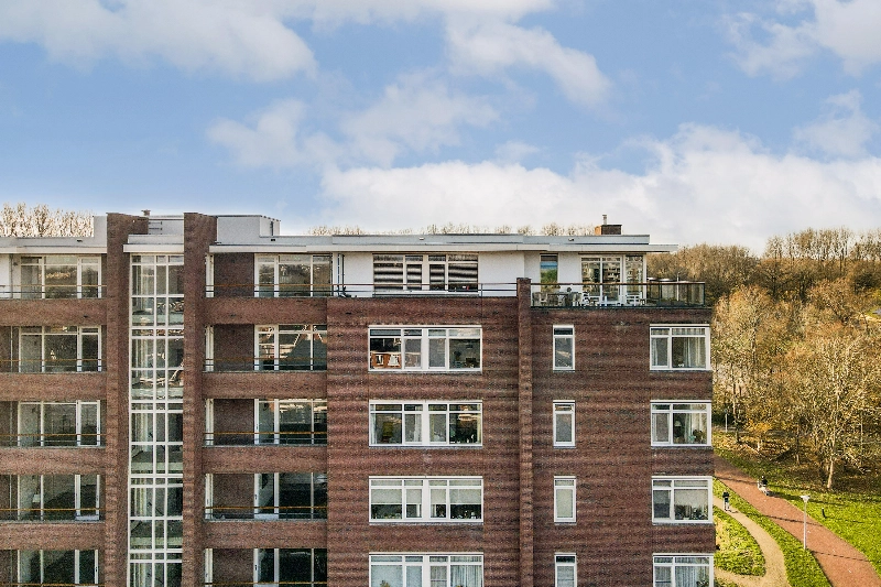 Dit ruime penthouse van 244 m² bevindt zich op de 6e verdieping van een kleinschalig, onder architectuur gebouwd appartementencomplex met in totaal 22 woningen. Het geheel is op eigen grond gelegen. U beschikt over een eigen garagebox in de afgesloten parkeergarage en een aparte berging voor uw fiets — praktisch en comfortabel.