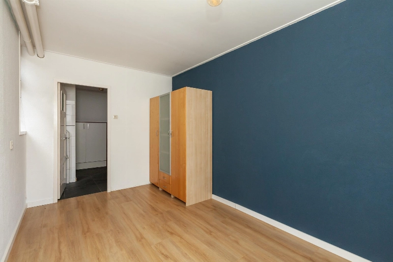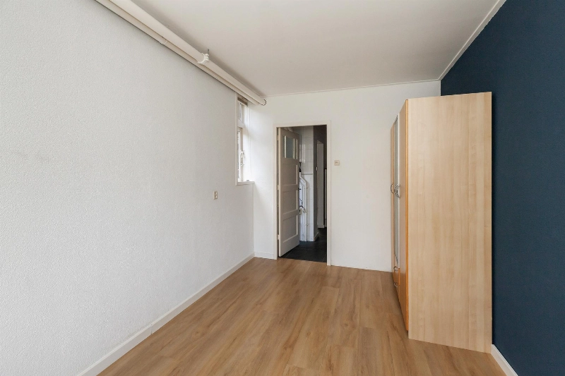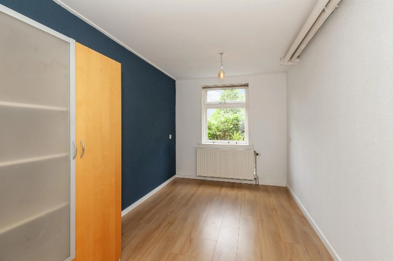 De ruime slaapkamer ligt aan de rustige achterzijde van de woning en biedt voldoende ruimte voor een groot bed en kastruimte. De afmeting is ca. 4.48 x 2.74m.