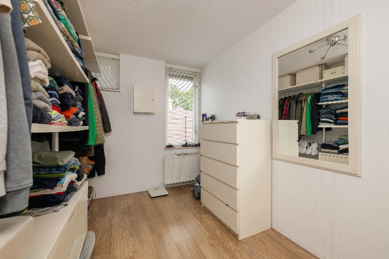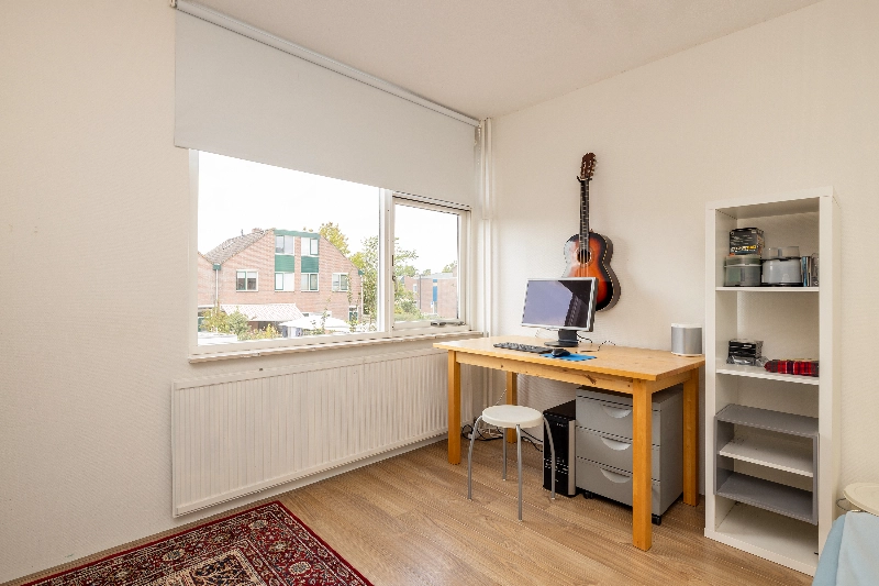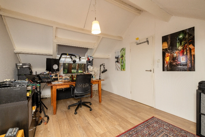 De grote zolderkamer is voorzien van een dakraam en biedt volop mogelijkheden: een extra slaapkamer, werkkamer, hobbyruimte of thuissportschool – aan u de keuze! Ook hier is veel bergruimte aanwezig achter de knieschotten.