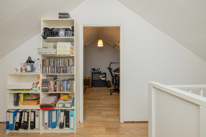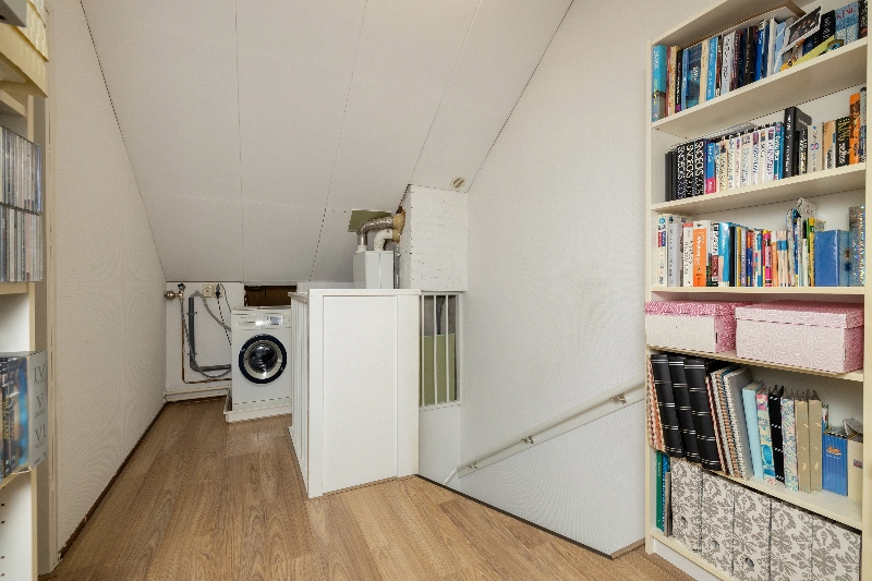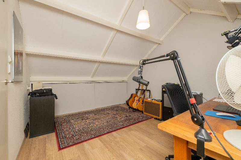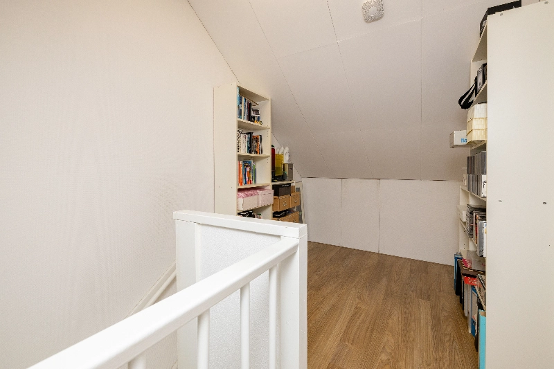 De zolderverdieping beschikt over een ruime multifunctionele zolderkamer en volop bergruimte.