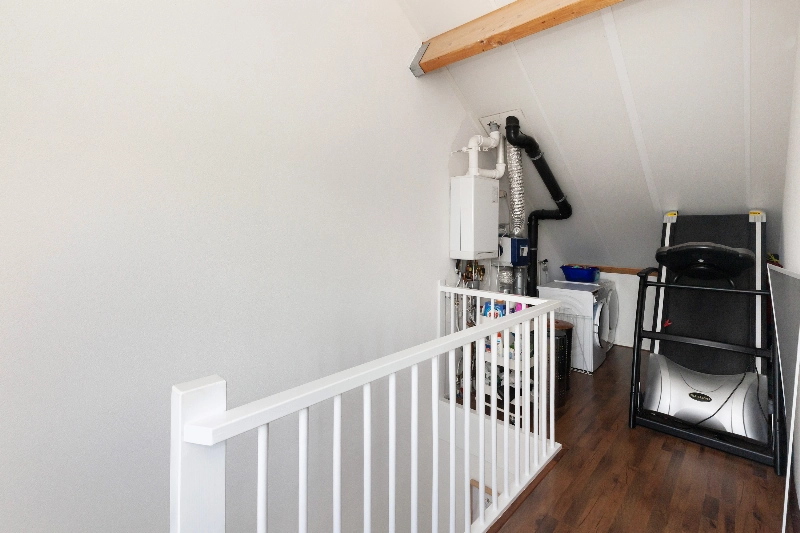 Er is hier een grote voorzolder met wasmachine - en droger aansluiting, opstelplaats voor de CV en mechanische ventilatie.