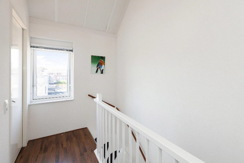 Via de gerenoveerde trap met verlichting bereik je de 1e verdieping, deze verdieping is geheel voorzien van laminaat.
