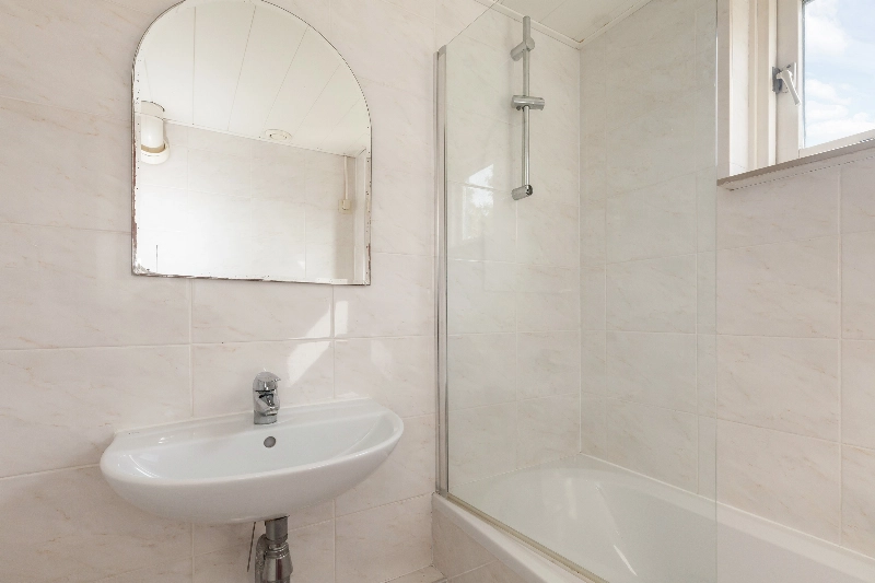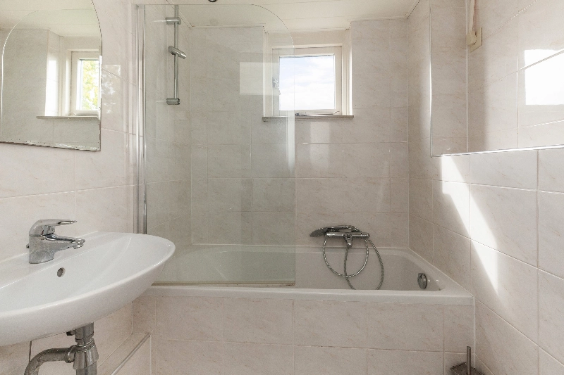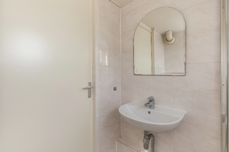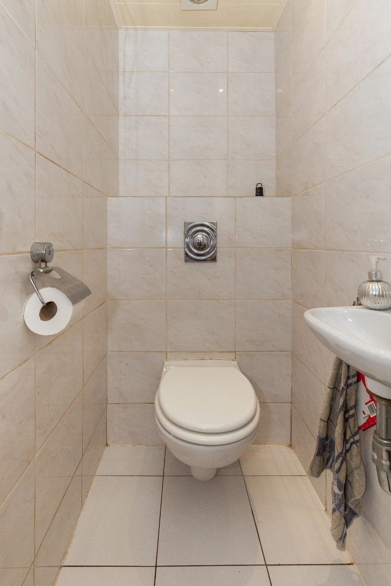 Op de tweede verdieping bevindt zich tevens een 2e badkamer, voorzien van lichte betegeling, een ligbad, een wastafel met spiegel en een zwevend toilet.