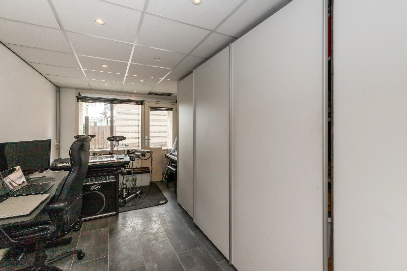 De werkkamer heeft eveneens een deur naar de oprit/voortuin. Zo kan deze kamer ook gebruikt worden als een kantoor/praktijk aan huis.