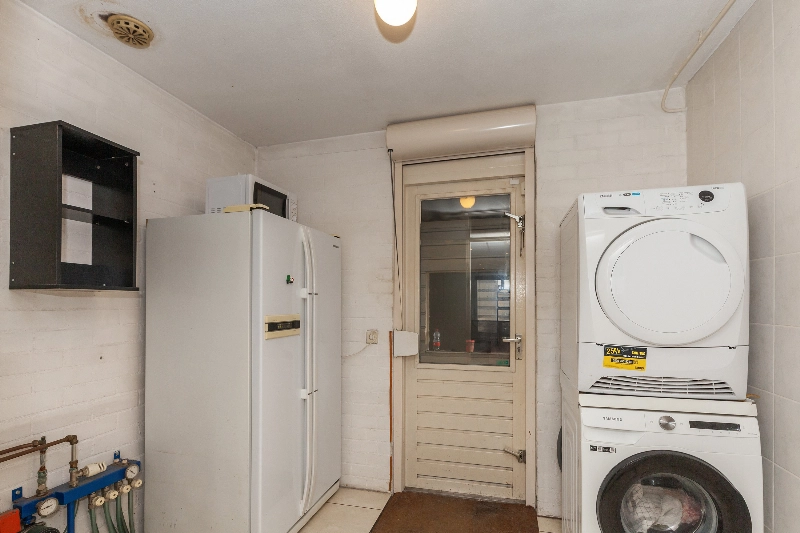 In de bijkeuken bevinden zich de opstelling van de c.v. combiketel (2014), de wasmachine- en drogeraansluiting. Vanuit de bijkeuken heeft u toegang tot de tuin en de werkkamer (voormalige garage).