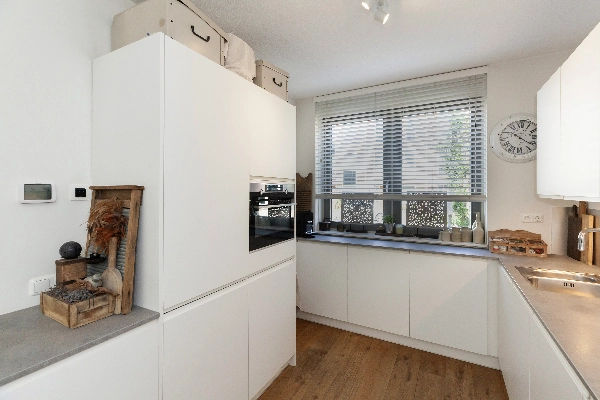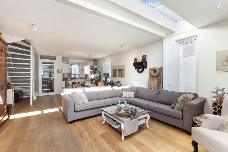 Direct na de oplevering is deze woning voorzien van een uitbouw aan de achterzijde met een sfeervolle lichtstraat zodat er niet alleen veel ruimte maar óók veel licht is in de woonkamer. De woonkamer is afgewerkt met eikenhouten vloerdelen en de 3 zijramen geven extra sfeer. De moderne keuken bevindt zich aan de voorzijde en aan de achterzijde vind je de tuin met af te sluiten poorten naar de zijtuin en straatkant.