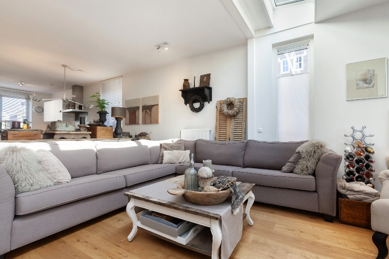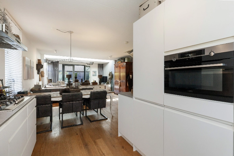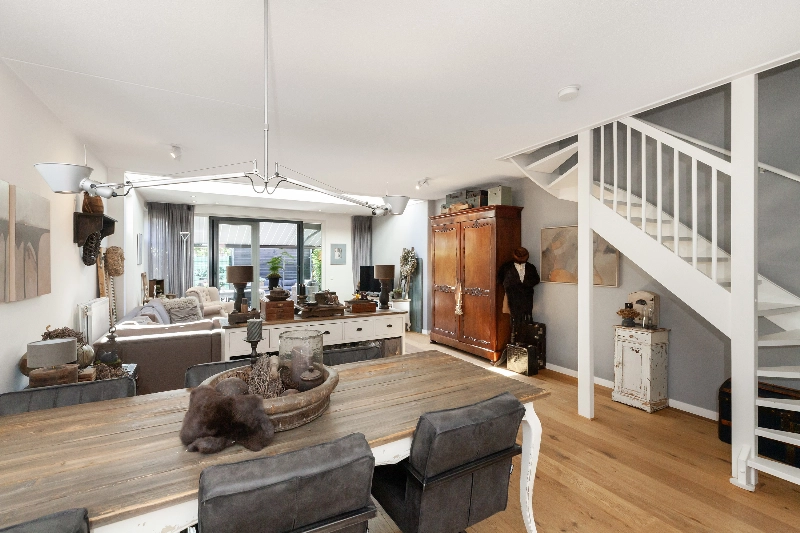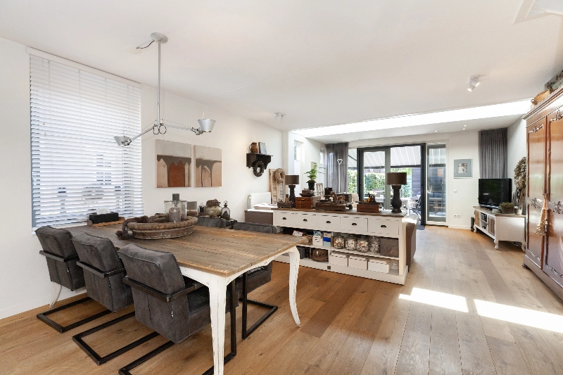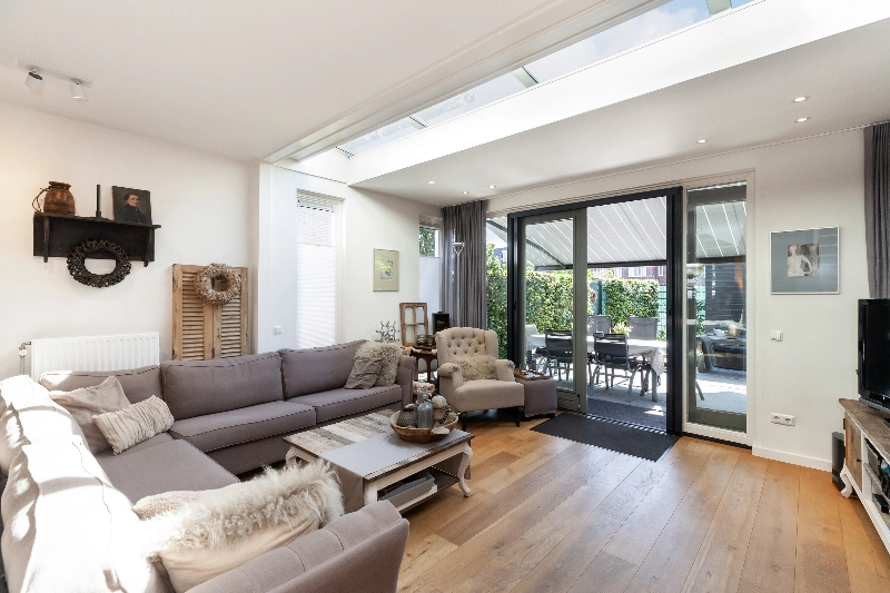 - Uitbouw van 2,65 m aan de achterzijde, met lichtstraat en veel extra hoge ramen;