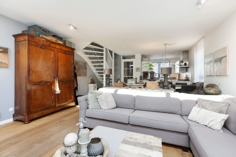 - Houten eiken parketvloer op de begane grond en laminaat op de 1e en 2e verdieping;