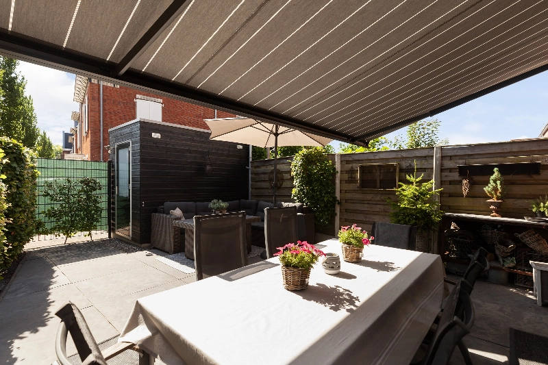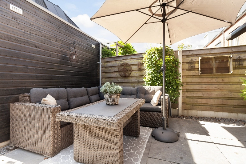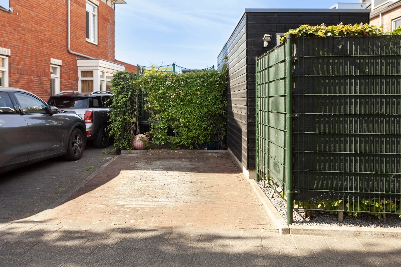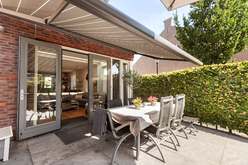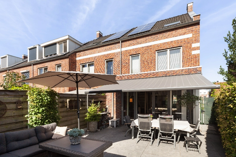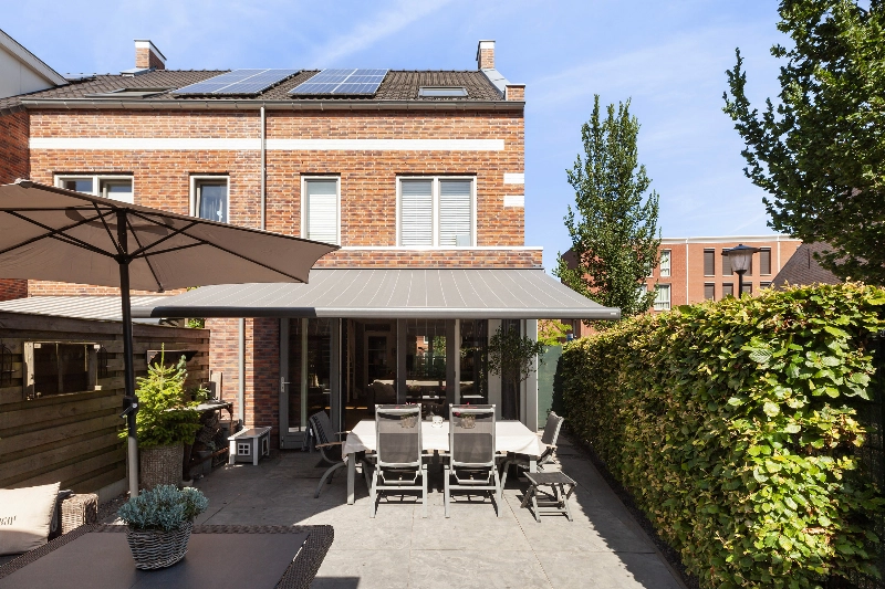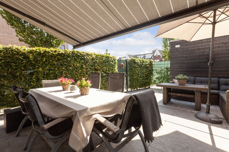 - Zonnige en fraai aangelegde tuin met buitenkraan, zonnescherm, berging en achterom;