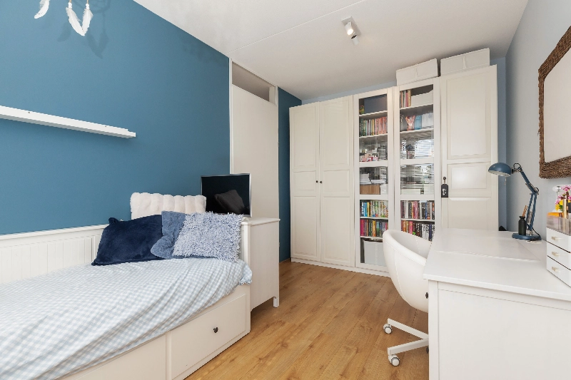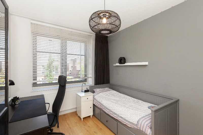 Slaapkamer II is eveneens gelegen aan de achterzijde en is voorzien van een extra zijraam.