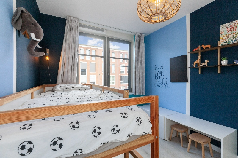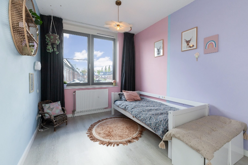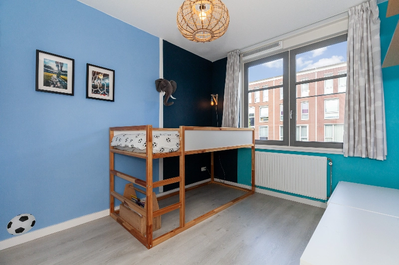 Slaapkamer III ligt aan de voorzijde met een vrij zicht naar de Hoflaan.