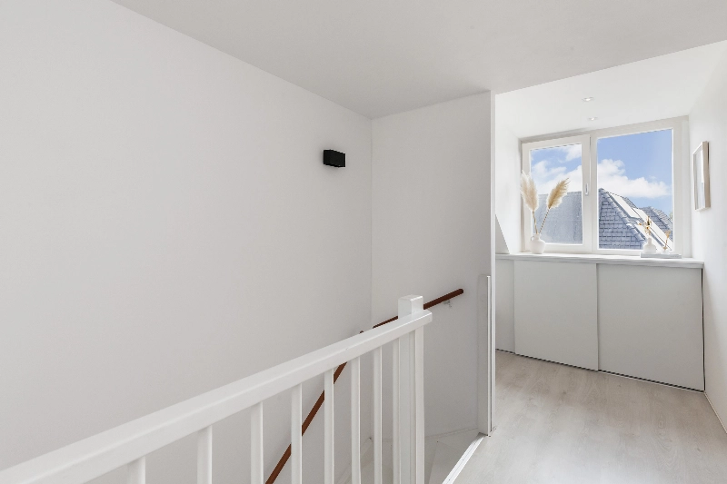 De gehele zolderverdieping is ook hier weer voorzien van een fraaie laminaatvloer en er is een dakkapel aan de achterzijde die over de volle breedte is geplaatst. Zo is er een ruime voorzolder én 4e slaapkamer ontstaan.