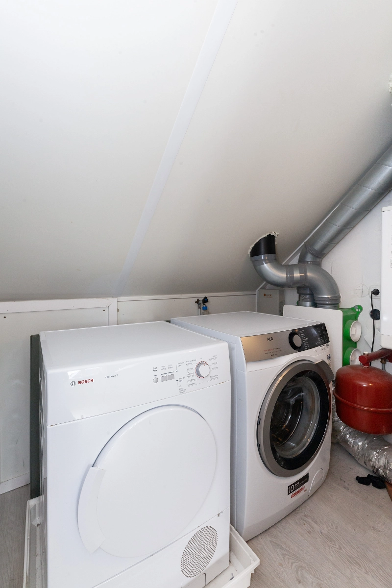 Er is een aparte wasruimte met opstelplaats voor de wasmachine, droger, mechanische ventilatie, omvormer van de zonnepanelen en de CV-combi.