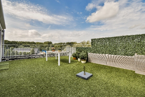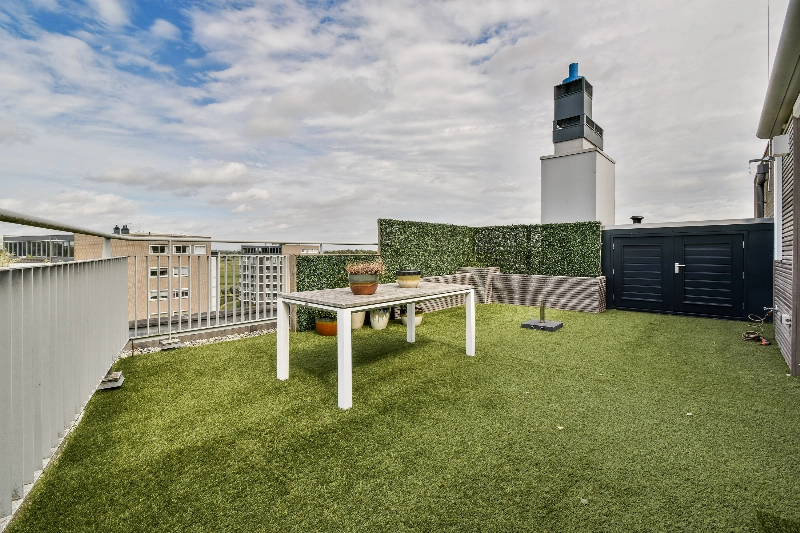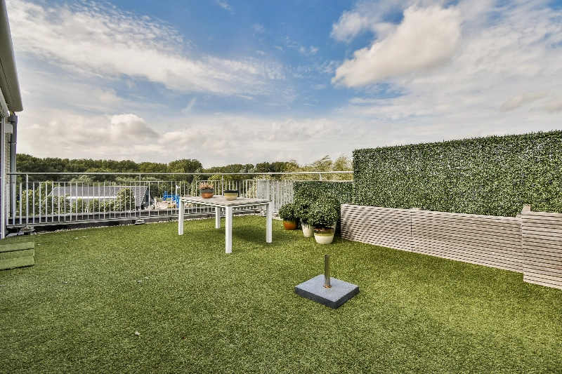 Bij het appartement hoort een mooi dakterras van 37 m² met vanaf hier ook weer dat vrije uitzicht!