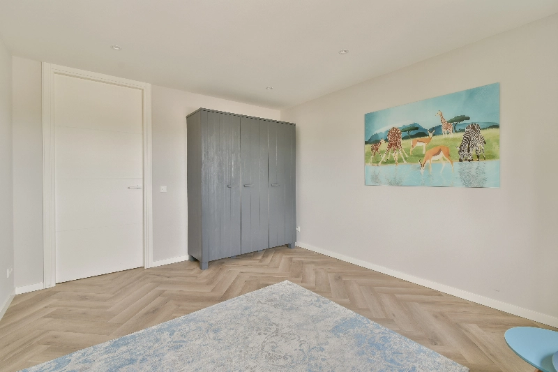 Via de living loop je door naar de aangrenzende 1e (slaap-)kamer. Ook hier kan je de ramen weer openschuiven en al vroeg in het jaar de warmte van de zon binnenhalen! Deze kamer is met 23 m² ook weer ruim te noemen en kan prima dienen als werk-, muziek of hobbykamer. Hier is een airco aanwezig. Aangrenzend ligt de betegelde was-stookruimte alwaar opstelling CV-combi, wasmachine-aansluiting en een uitwasgootsteen.