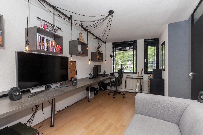 Gelijk bij binnenkomst is een mooie ruime werkkamer welke voor diverse doeleinden gebruikt kan worden zoals een slaapkamer, werkkamer of een kantoor aan huis.