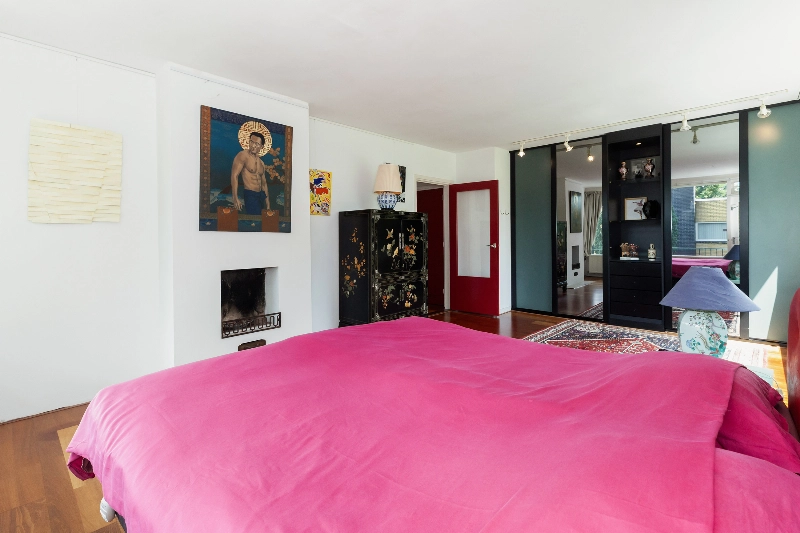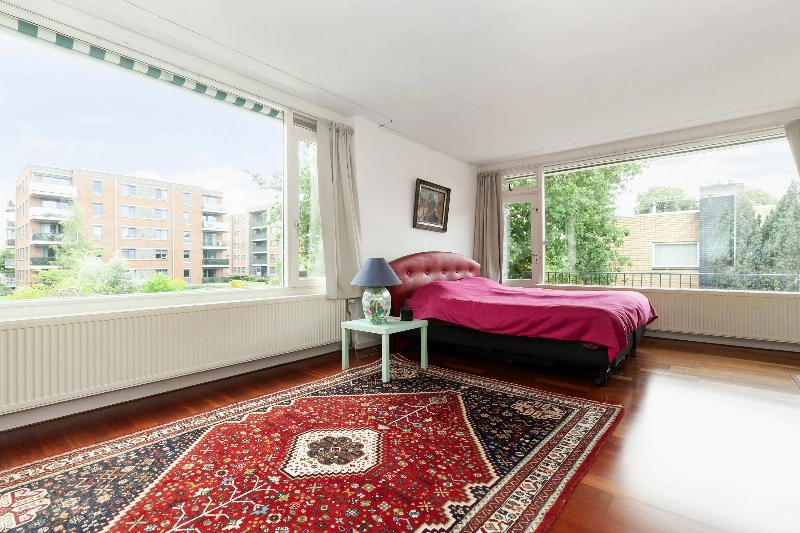 Slaapkamer I (6.80m x 4.20m). Deze masterbedroom heeft een prachtige afmeting en is aan de achterzijde gelegen. De kamer is voorzien van een grote vaste kastenwand, een open haard en een deur naar het terras. Vanuit deze kamer heeft u een vrij zicht op de tuin en het water. Slaapkamer II (4.30m x 2.87m). Deze tussenkamer heeft een dubbele deur naar het terras.