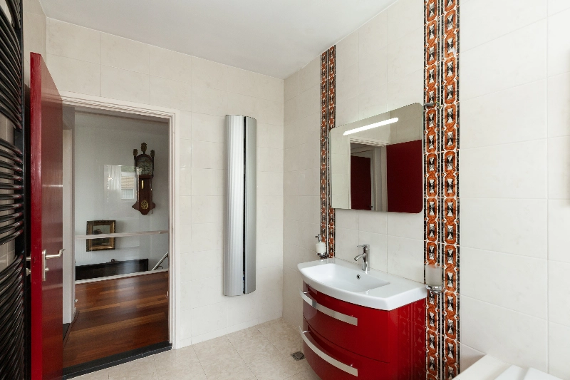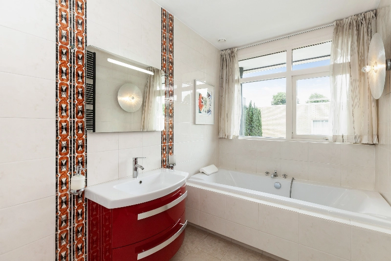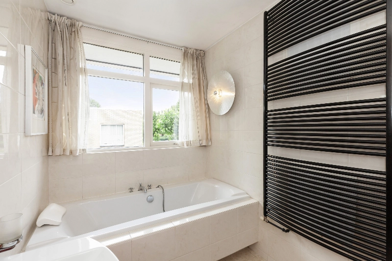 Badkamer I is gelegen tussen slaapkamer II en III en is geheel betegeld en voorzien van een ligbad, wastafelmeubel en een radiator.