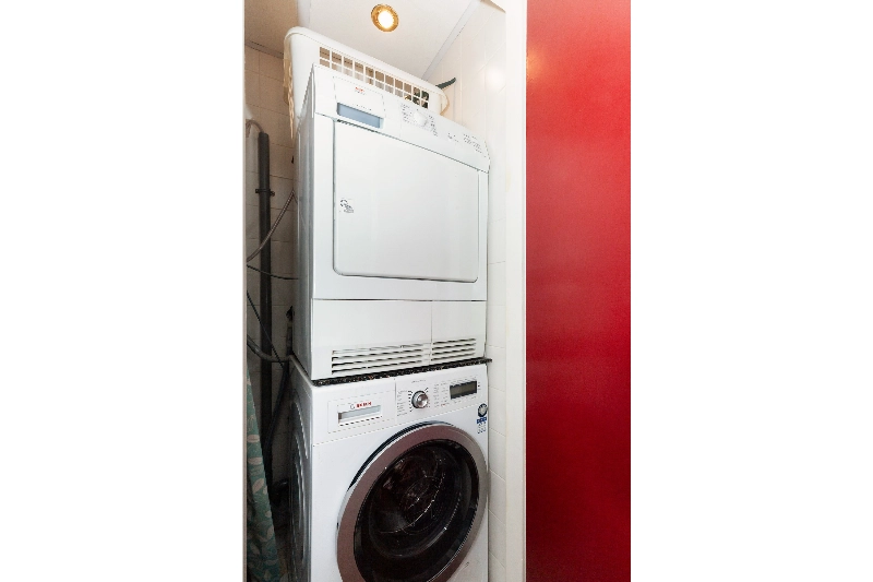 Bergkast met opstelplaats voor de was- en droogmachine.