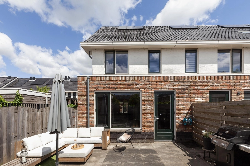 De achtertuin is door de hoekligging net even wat breder dan normaal in de wijk en is voorzien van een stenen berging. Een duurzaam hekwerk staat verstopt achter de schutting. Via de tuin bereik je op het mandelige terrein je eigen parkeerplaats. Zo hoef je nooit meer te zoeken naar een parkeerplek!