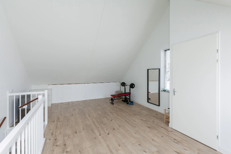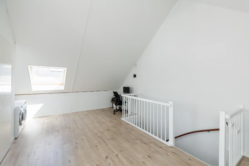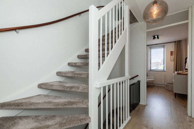In 2023 is de trap voorzien van een mooie vloerbedekking. Ruime overloop met een houtlook laminaatvloer welke doorloopt over de gehele verdieping.