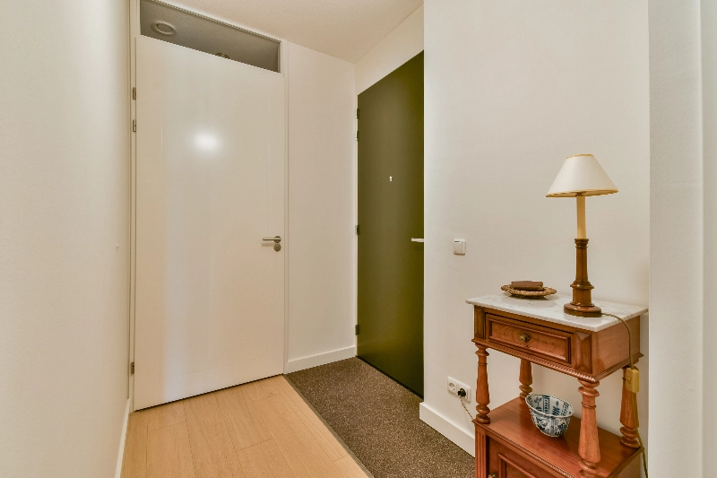 De entree van het appartement is gelegen op de 2e verdieping. U komt binnen in een ruime ontvangsthal met videofoon en toegang tot alle vertrekken. Op de vloer ligt een eiken parketvloer welke doorloopt door het gehele appartement. De meterkast is voorzien van 9 groepen, 3 aardlekschakelaars en een hoofdschakelaar.